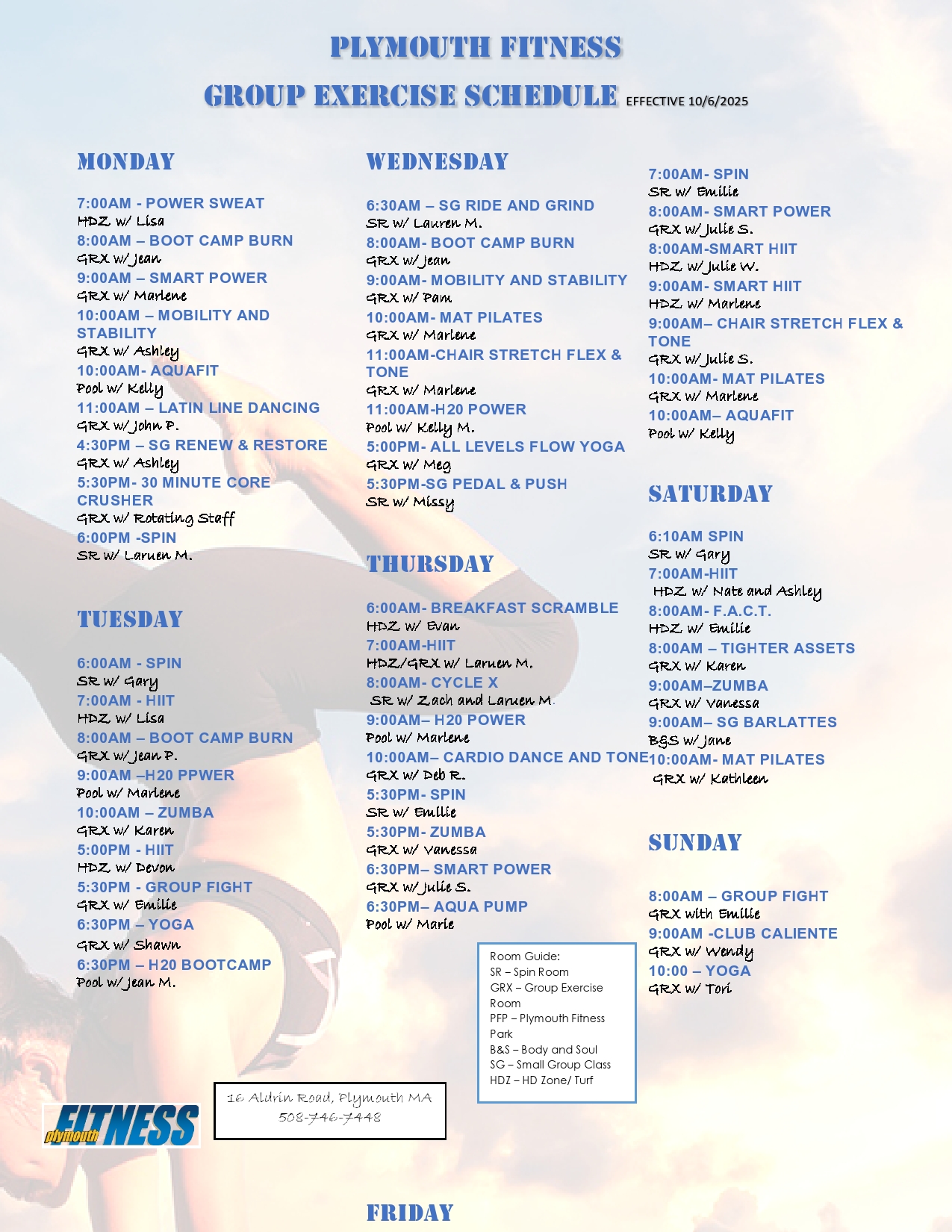 New Group Exercise Schedule / Uncategorized / By pbaldrate Check all the new classes added to the schedule while our swimming pool renovation in underway. No pool, no problem! Members click here to schedule up to 1-week in advance