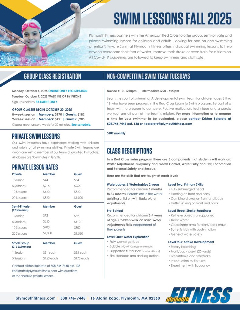 That is the specific reason that Plymouth Fitness partners with the American Red Cross to offer group, semi-private and private swimming lessons for children and adults. Looking for one on one swimming attention? Private Swim at Plymouth Fitness offers individual swimming lessons to help anyone overcome their fear of water, improve their stroke or even train for a triathlon.